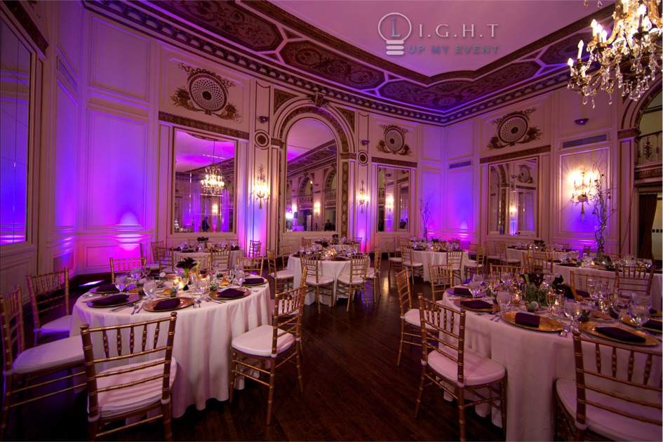 First we will decide on the colors to paint your room. The brighter the colors the greater the effect. We can match with any pallet of colors, all that we require is a color swatch. The most common solution we do for events is wall uplighting. This is accomplished by placing energy friendly LED lighting fixtures around the base of your walls. Since our lighting is computerized, it can match with your theme or slowly fade during the initial stages of the event. During the dancing portion of the evening, lighting changes to the beat of your music. This level of sophistication is something that guests are not familiar with.